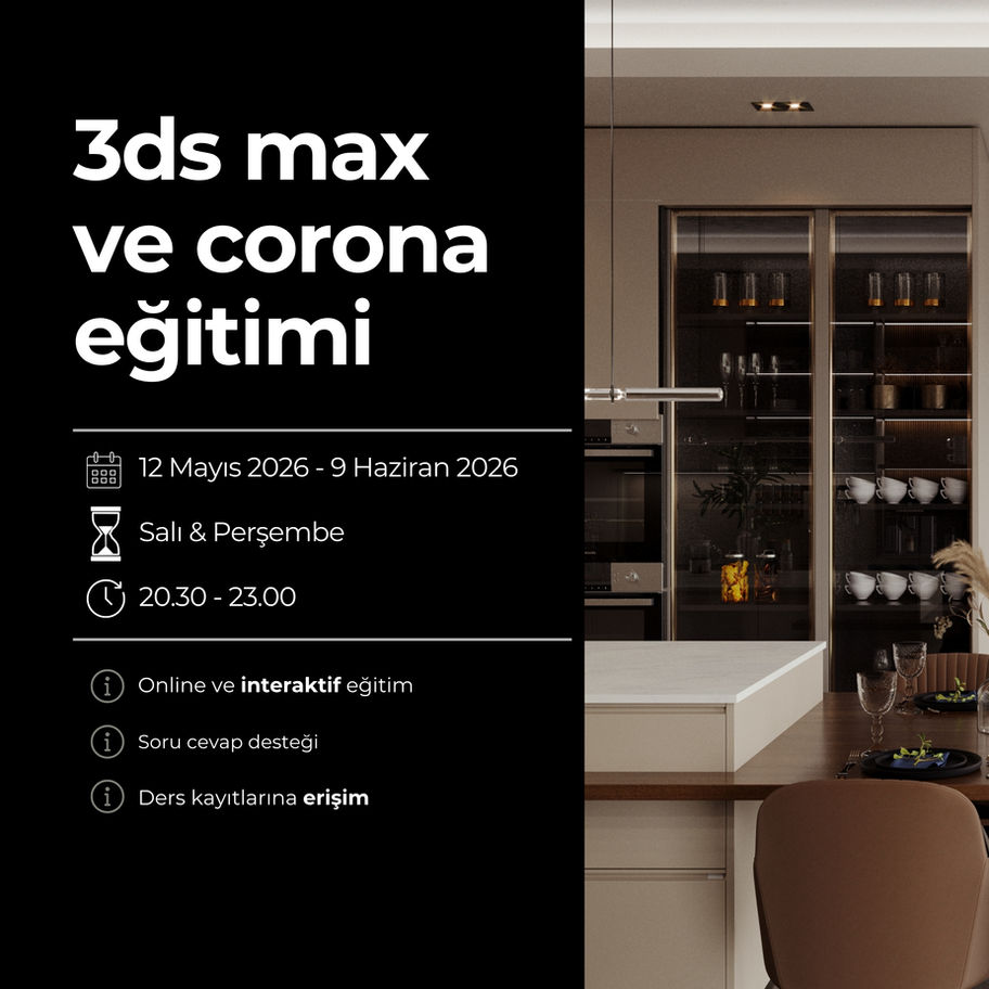 3ds Max & Corona Render eğitiminin detaylarını içeren PDF’i ve demo dersi sizinle paylaşıyoruz. Eğitimimiz, 8 kişilik sınırlı kontenjanla yürütülmekte olup her katılımcının derste aktif olarak öğrenmesine imkan tanıyacak şekilde tasarlanmıştır.